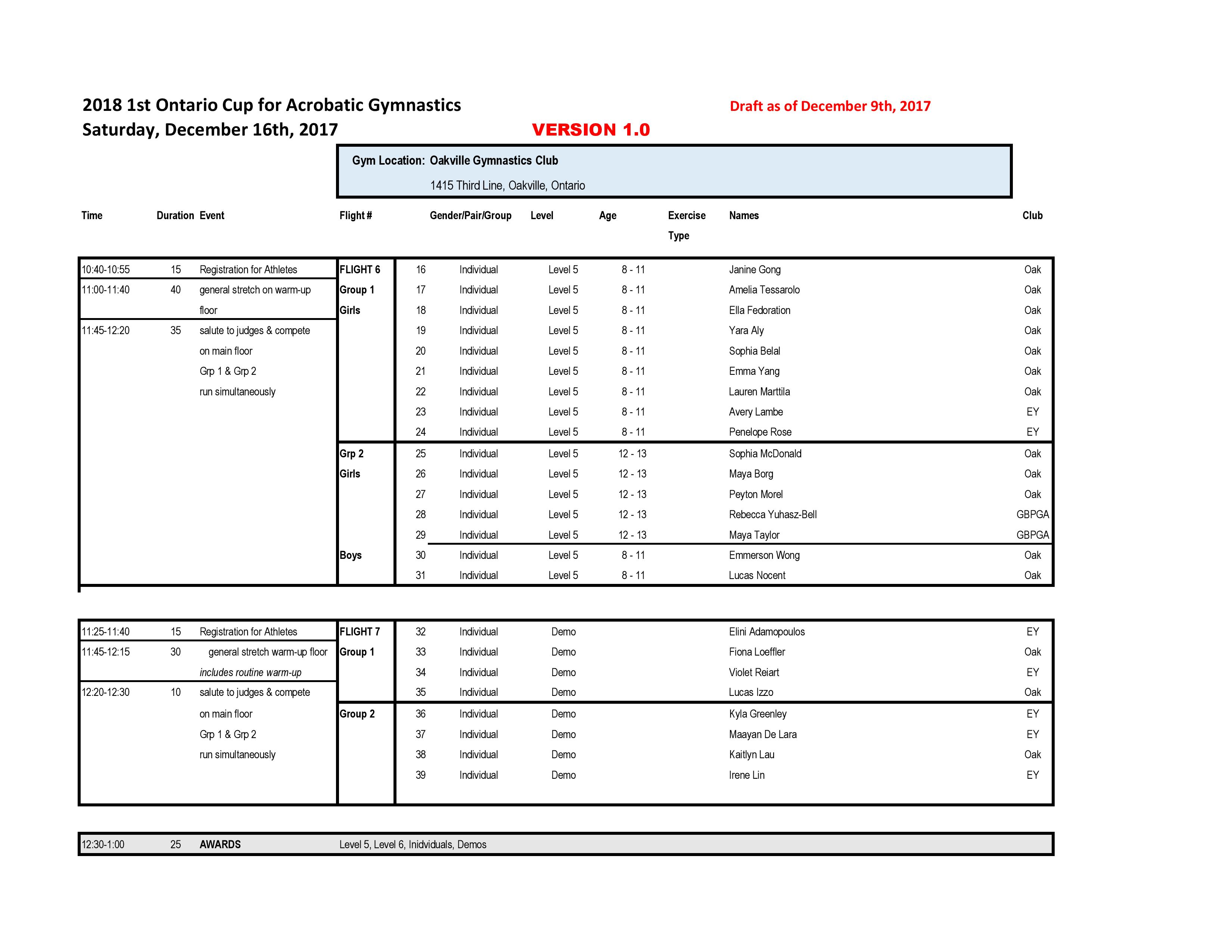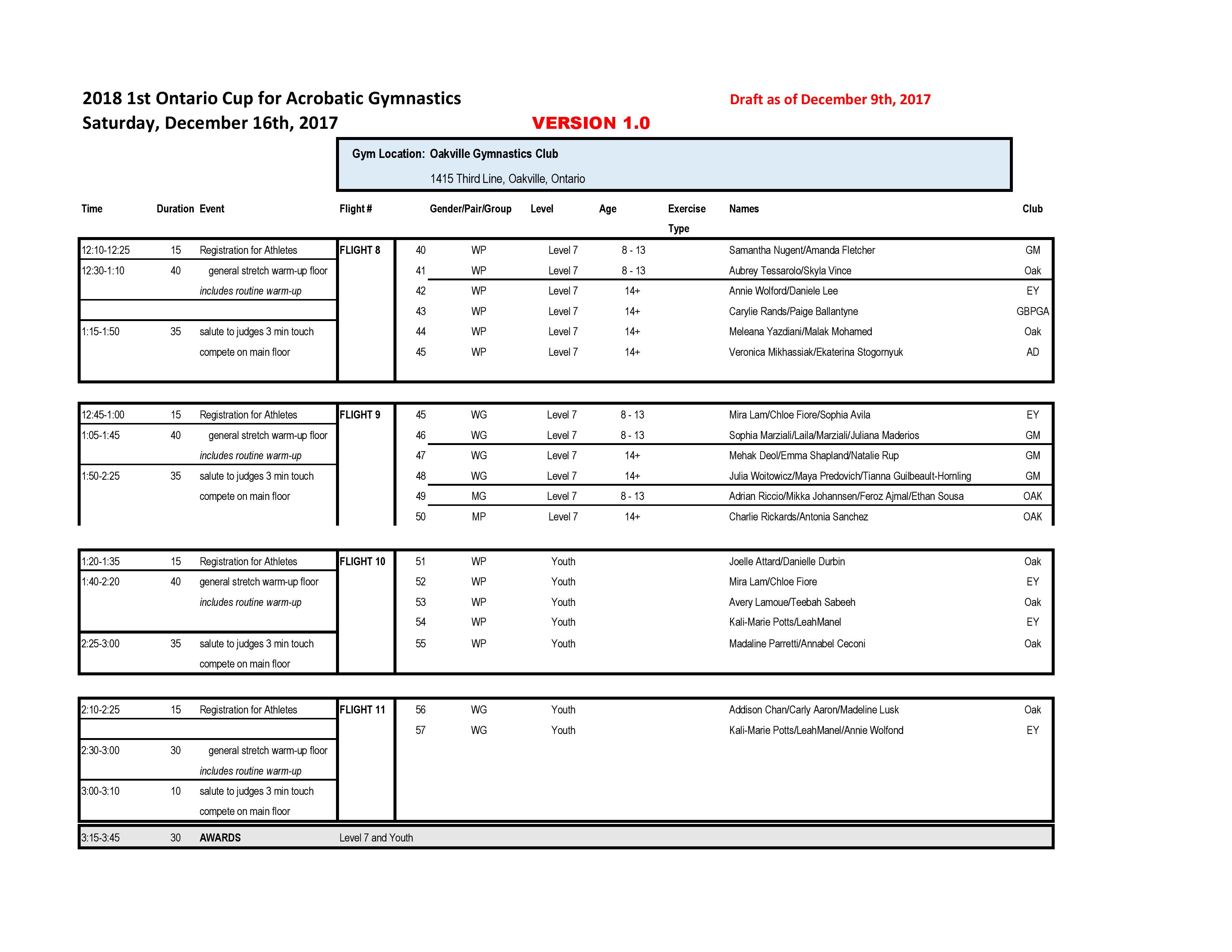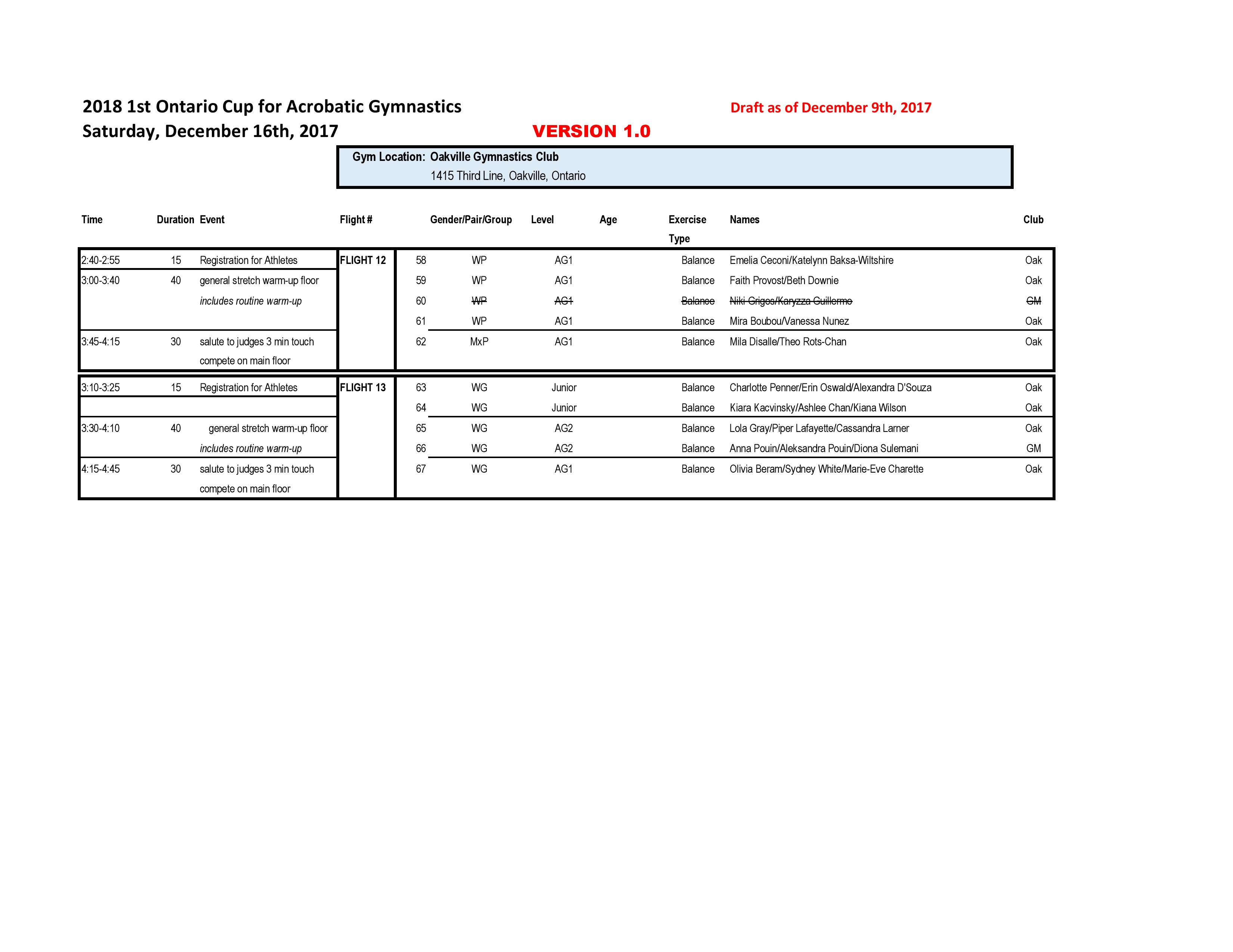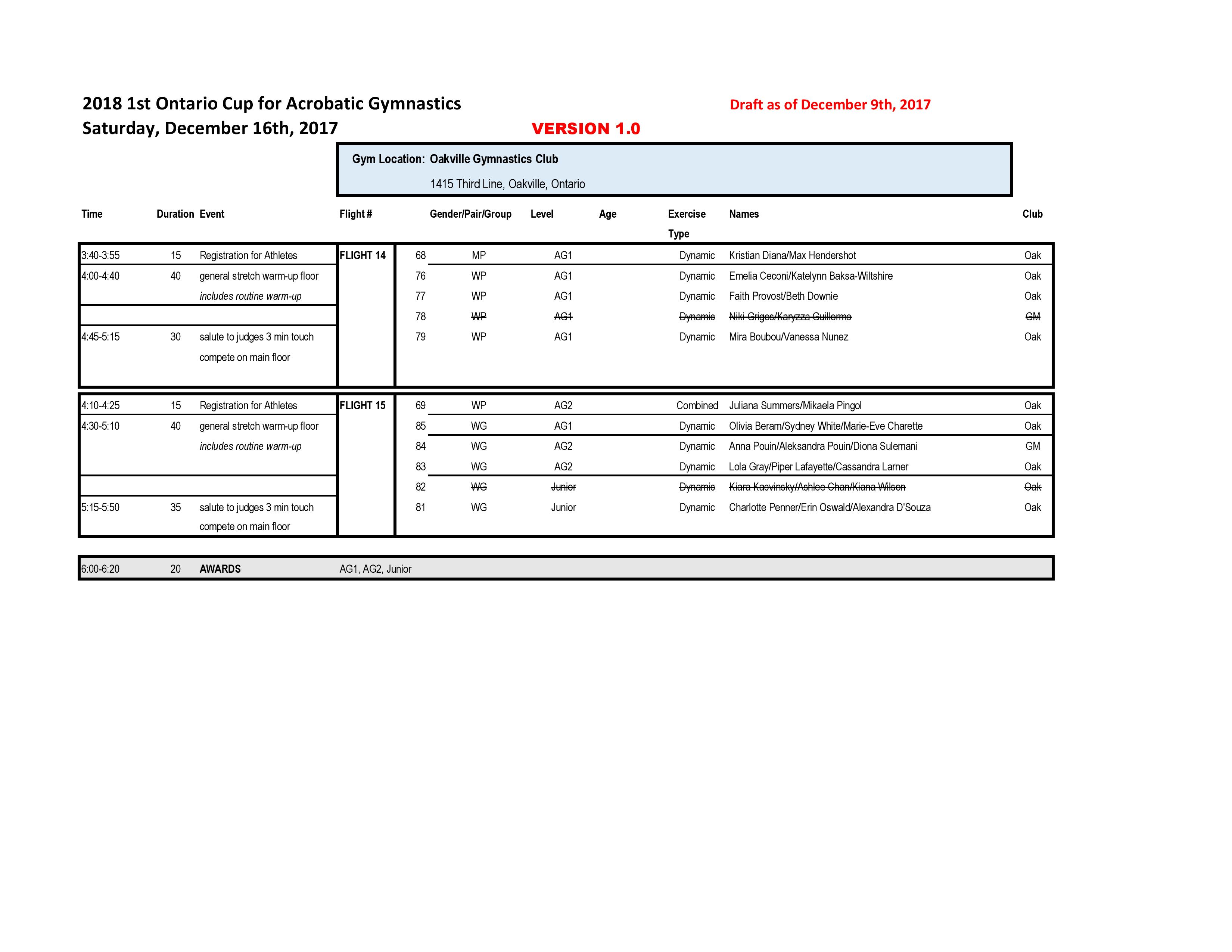 Our apologies for the delay in getting this schedule posted. It was only shared by Gymnastics Ontario today.