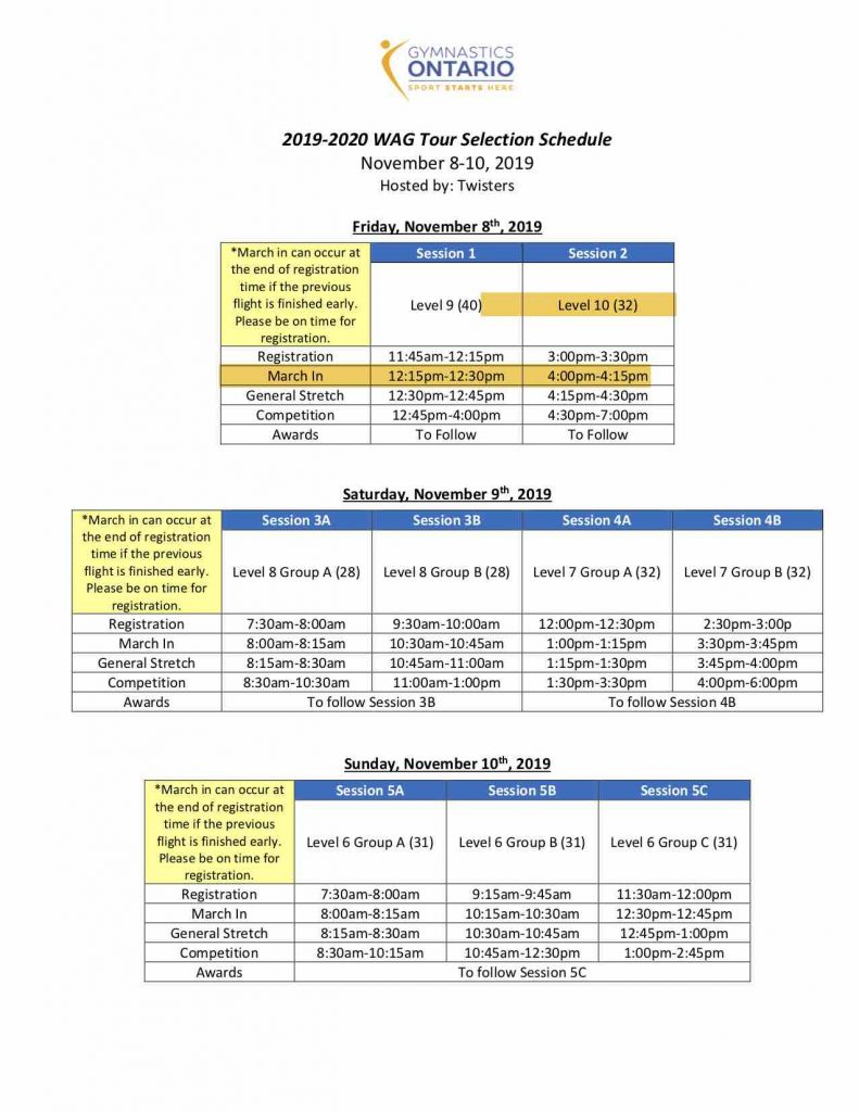 Good luck to our athletes attending WAG Tour Selection November 8-10 in Orangeville. The event will be hosted by Twisters Gymnastics and Trampoline Club, 275 Alder St. The event is open to athletes 14+, levels 6-9 and 12+ level 10. Athletes and coaches from clubs all over Ontario attend this event in the hopes of being selected to Team Ontario. The top 8 athletes and 2 Team Coaches will be selected for each level. The teams will be heading to Anaheim, California to compete at the California Grand Invitational in January.