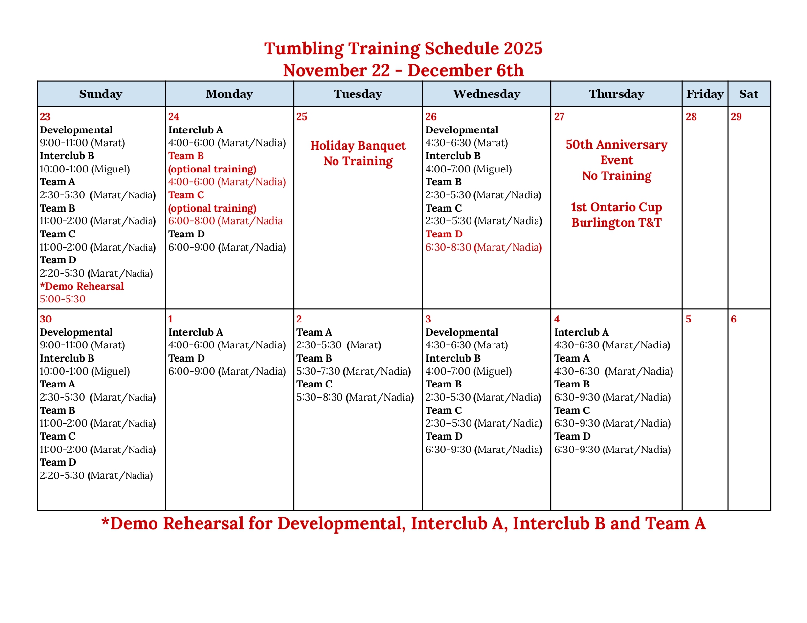 Tumbling Training Schedule 2025 November 9th – November 22ndBy Oakville Gym|2025-11-22T10:00:37+00:00November 22, 2025|Categories: Tumbling Blog|Read MoreComments Off on Tumbling Training Schedule 2025 November 9th – November 22nd