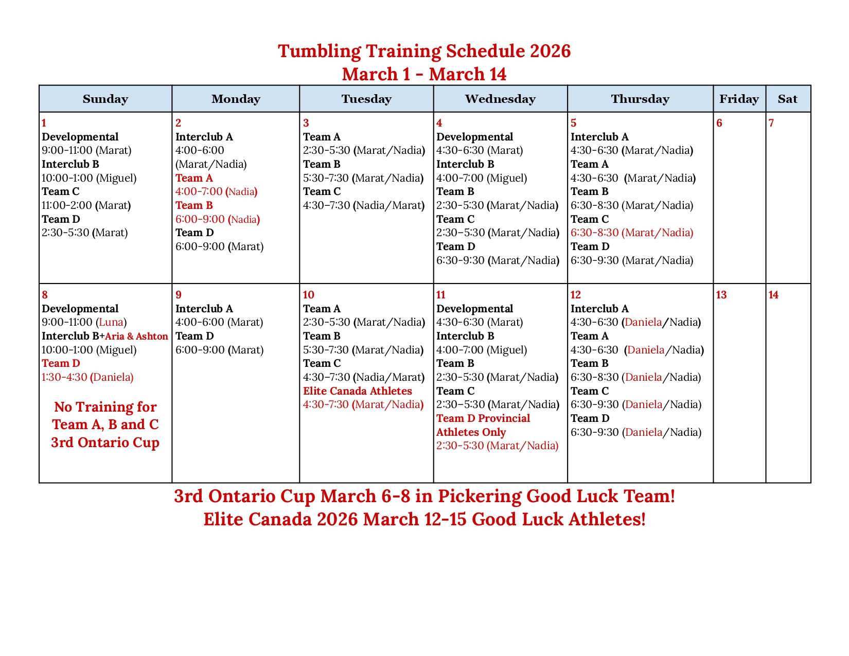Tumbling Training Schedule 2026 Feb 1 – Feb 14 Gallery Tumbling Training Schedule 2026 Feb 1 – Feb 14By Oakville Gym|2026-02-06T06:01:53+00:00February 5, 2026|Categories: Tumbling Blog| Download PDF Read MoreComments Off on Tumbling Training Schedule 2026 Feb 1 – Feb 14